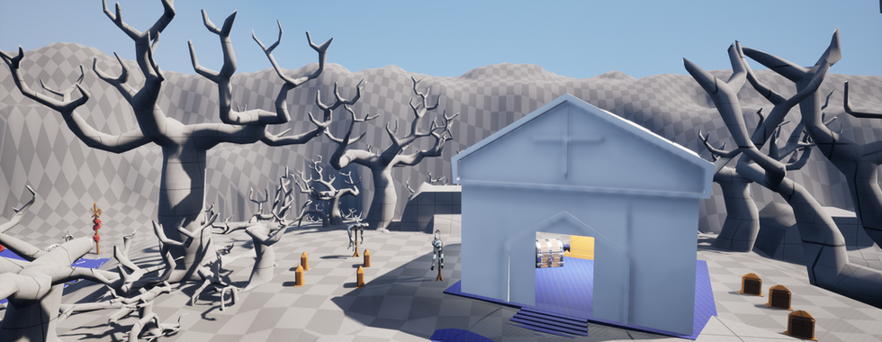 - Design Ownership: I designed the area from early concept to a fully playable level, focusing on exploration flow, encounter design, and environmental storytelling. The layout was structured to guide players naturally through the space while still allowing freedom of approach and multiple navigation choices. I created and iterated on the level blockout, defining critical paths, secondary routes, and hidden areas to support player agency and discovery. Combat encounters were placed and tuned to reinforce pacing, alternating between pressure and recovery moments while using terrain, chokepoints, and verticality to shape decision making. I implemented environmental storytelling through prop placement, spatial composition, and visual transitions, showing the corruption and influence of Iurupari as players move deeper into the dungeon. Narrative beats were embedded directly into the level rather than delivered through exposition. I designed the progression structure leading to the boss fight, ensuring mechanics, enemy behaviors, and traversal challenges introduced earlier in the level prepared the player for the final confrontation.
